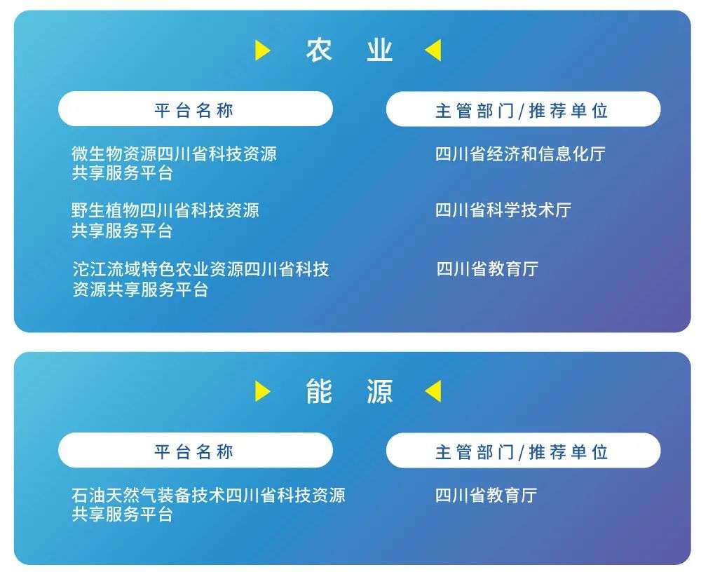 四川省级科技资源共享服务平台主要依托在川科研院所、高等院校、骨干企业等单位建设,分为基础条件类平台、统筹服务类平台两个类型。