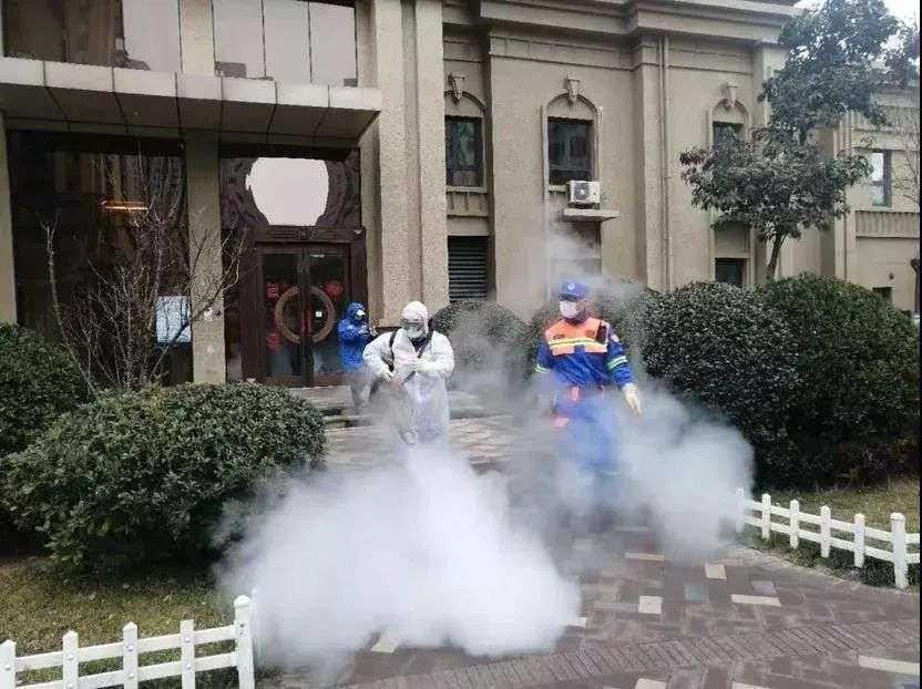 龙湖智慧服务正在社区内进行全面消杀