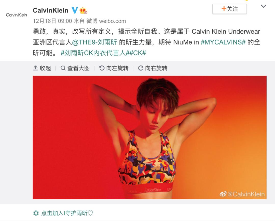 近期,CK官方发布刘雨昕为CK内衣代言人,这一发布引起了不少热议。