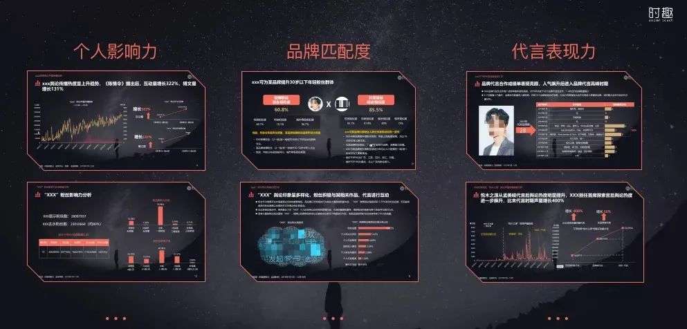 以前品牌在选择代言人时更多的是主观喜欢,或者追随流量明星,希望通过铺天盖地的广告和粉丝效应来达到提高品牌效应和销量的目的。结果是,这对于品牌知名度有提升,但在产品宣传上力度不够,从而给消费者带来了同质化的感觉。事实上,评价一个明星代言合作的维度是多元的,绝不止是主观认为。时趣通过长期对品牌和代言人的数据监测,基于明星个人影响力、品牌匹配度、代言表现力这三大重要维度,八大细分指标,构建IME代言人评估体系,作为品牌科学选择代言人的策略依据,为品牌科学评估明星代言。