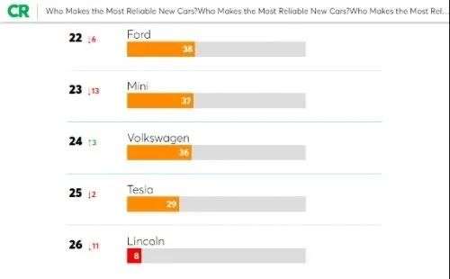 11月份,美国《消费者报告》发布了一份年度汽车可靠性调查,在参选的26个汽车品牌中,特斯拉排名倒数第二。另一家研究机构J.D. Power也对这一特斯拉给出负面评价,在其发布的《2020年新车质量研究报告》中,特斯拉以每100辆车出现250次故障的表现,排名末尾。