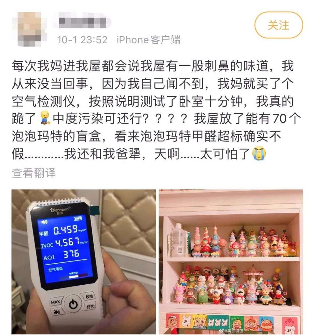 除IP争议外,记者从不少消费者处了解到,泡泡玛特的产品疑似甲醛超标。