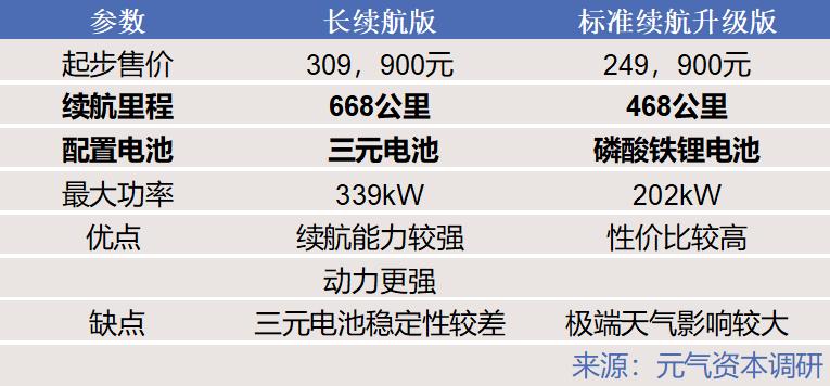 各大新旧造车势力并没有尝试继续提升磷酸铁锂的能量密度和续航能力,而是选择将磷酸铁锂装配在强调性价比的车型上,将三元电池装配在强调性能的车型上,让消费者自己选择不同的电池车型。