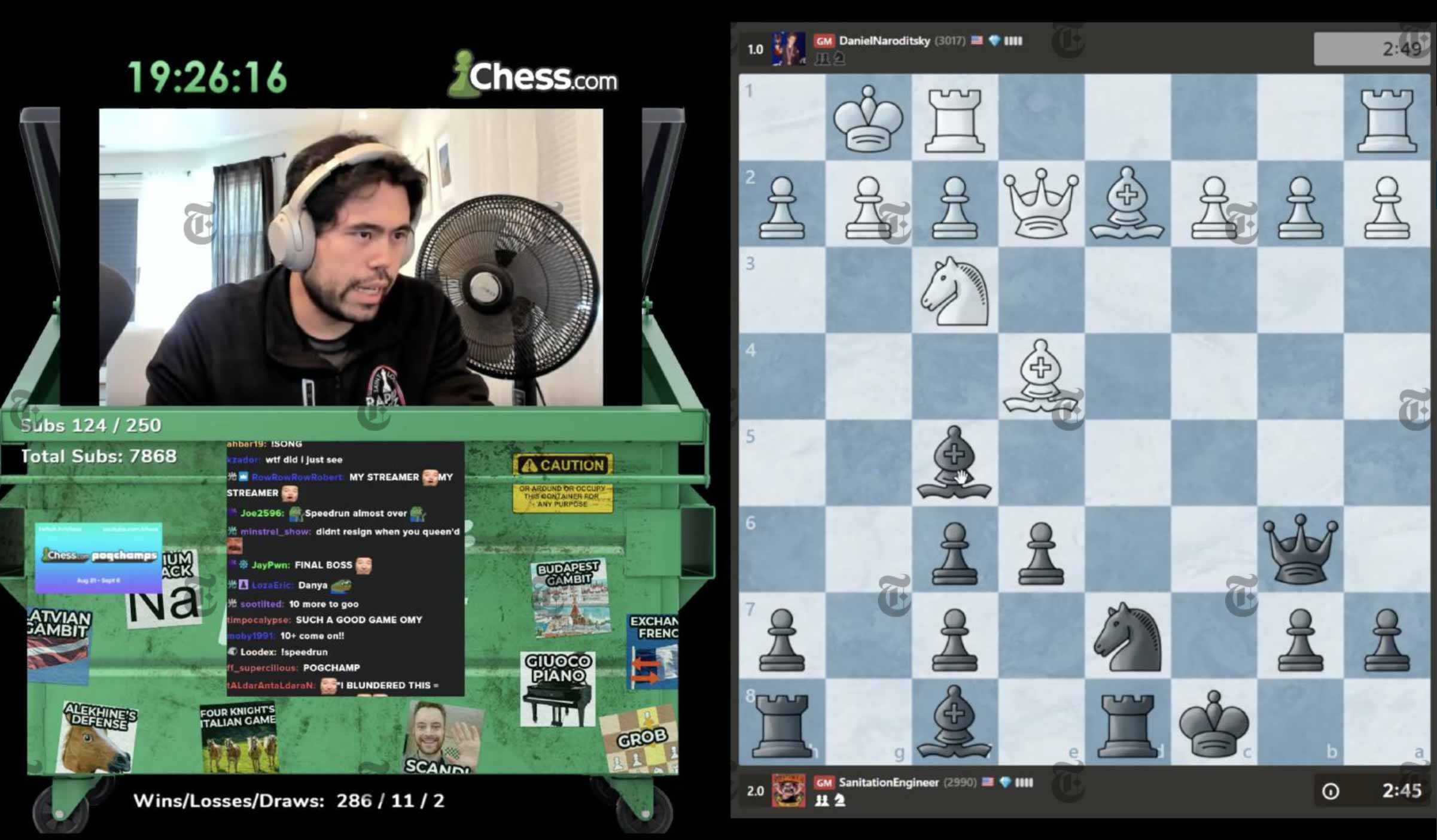 疫情期间,约有528000名粉丝在Twitch频道上围观著名国际象棋选手中村光下象棋|图片来自《纽约时报》