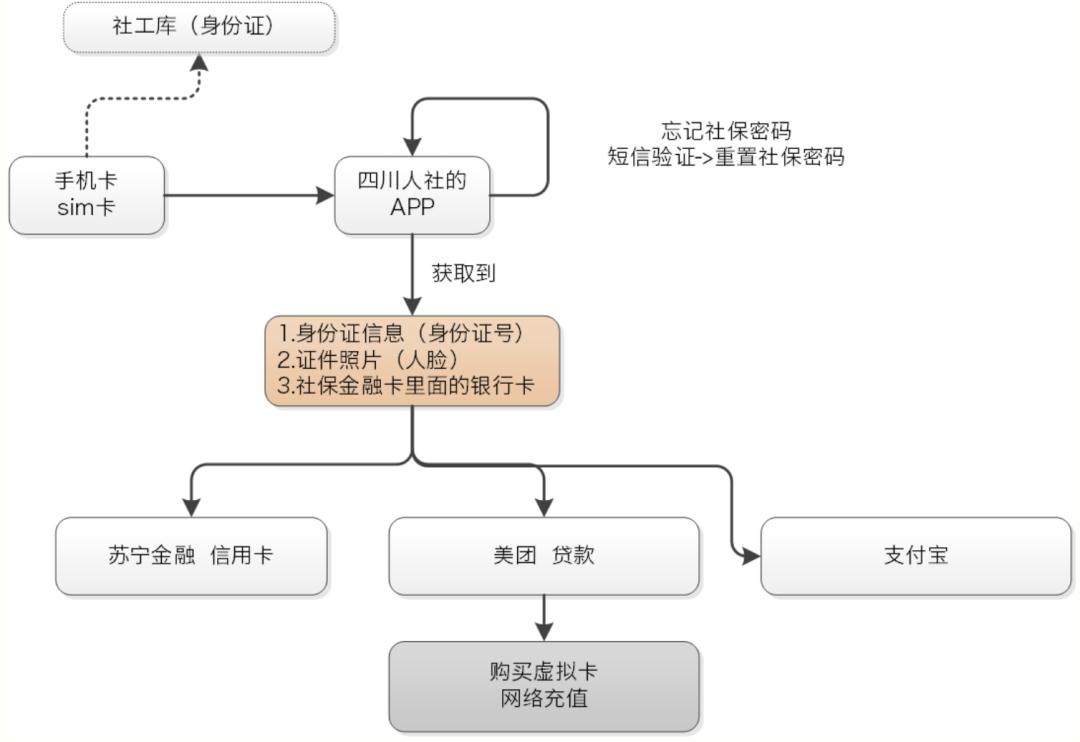 3 个月前,四川人社 app 被曝出漏洞,如果用户的手机不慎遗失,不法分子可以取出手机里的 SIM 卡,利用四川人社 app 拿到手机号对应人的身份证信息、人脸证件照片和社保金融卡里的银行卡,然后用拿到的信息去办理各种小额贷款或充值虚拟卡,套现后消失。