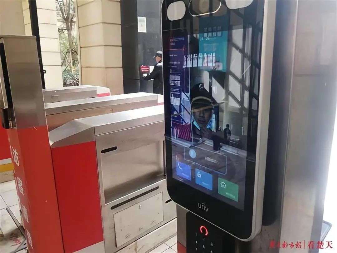 武汉某小区保安正在演示人脸识别门禁功能. 图片来自:楚天都市报