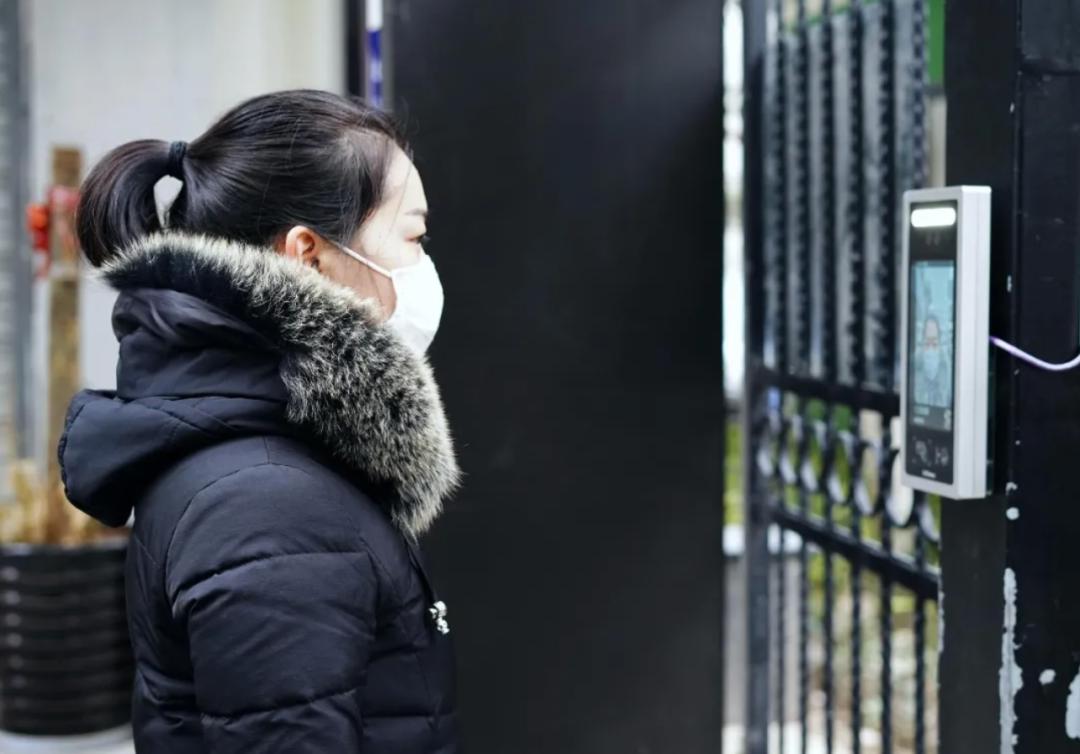 杭州居民戴口罩刷脸进小区,该系统在居民戴着口罩的情况下,也可以精准识别 . 图片来自:人物(公众号)