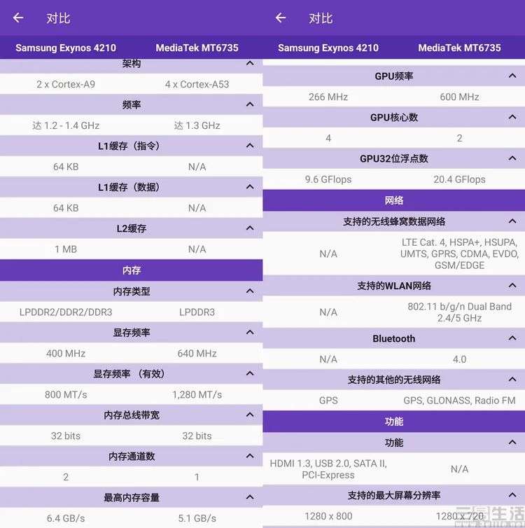 但如果是在智能手机上呢?我们三易生活也将Galaxy S2所使用的Exynos 4210主控,与如今许多入门机型(特别是非一线品牌)所常用的MT6735进行了对比,从中大家就会发现一些问题了。