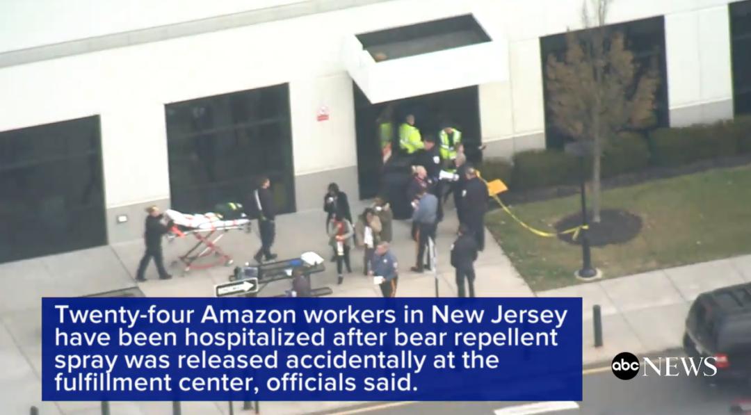比如在2018年12月,在新泽西州的一个亚马逊仓库中,一个机器人不小心将一瓶驱熊喷雾扎破,致使24名亚马逊员工受伤,当场就被送往医院。