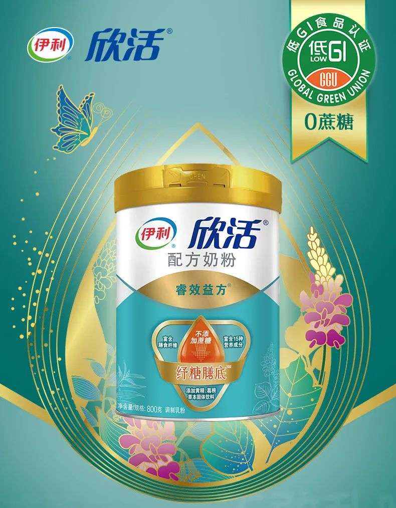 而伊利在成人奶粉的布局可以追溯到十几年前,其针对45岁以上人群推出的中老年奶粉“欣活”目前在中老年奶粉市场中保持份额第一。在堪称“低糖”大年的2020年,伊利欣活顺应了低糖趋势,推出了“0蔗糖添加”纾糖膳底配方奶粉。