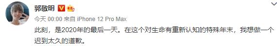 12月31日凌晨,郭敬明突然发文就当年小说《梦里花落知多少》抄袭《圈里圈外》一事向作者庄羽道歉。文中除坦白的讲述了自己当年年少轻狂的虚荣心和面对法院判决的抗拒情绪外,还表示要将《梦里花落知多少》的所有收益赔偿给庄羽。