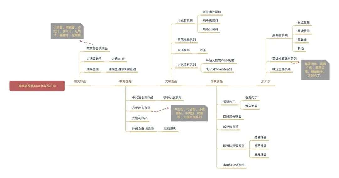 2020年主要调味品公司新品方向,36氪根据公开资料整理