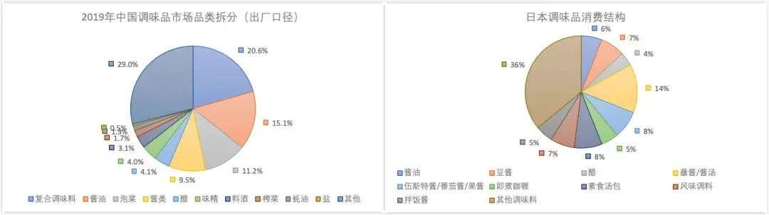 复合调味品是整个调味品产品发展主线。饮食文化类似、调味品市场相对成熟的日本,调味品支出结构当中,酱油、食醋等消费金额占比较小,复合调味料消费占比则高达90%以上。在中国,我们熟悉的老干妈、郫县豆瓣酱、味精就是复合调味品的典型代表。