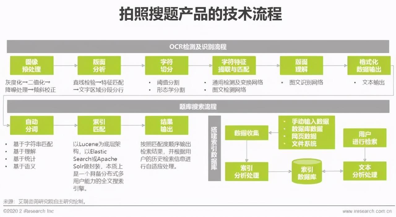 拍照搜题本身也有一定的技术和内容门槛,它的竞争点聚焦在两点,一个是对试题的AI算法识别与匹配能力,一个是内容题库。从技术上来讲,拍照搜题本身融合了扫描、智能识别、检索等大数据技术与图像识别技术。学霸君曾表示自己的拍照搜题技术壁垒有5年。