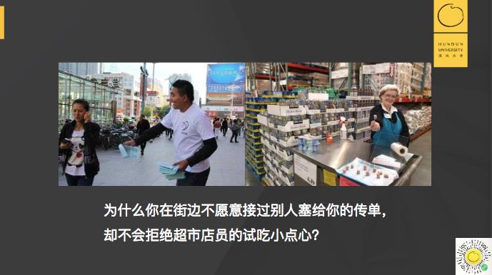 绝大多数人都不愿意接受别人塞给你的传单,但是你往往不会拒绝一个导购给你分享试吃的小点心。为什么?因为传单给你带来的是负担,而品尝给你带来的是利益。