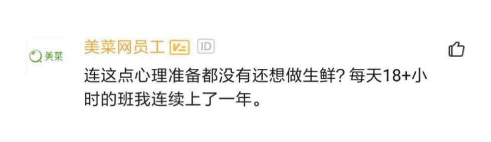 “连这点心理准备都没有还想做生鲜?每天18+小时的班我连续上了一年。”