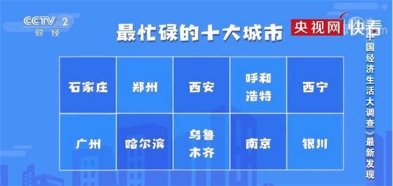 近期公布的最忙碌的十大城市,截图自《中国经济生活大调查(2019—2020)》