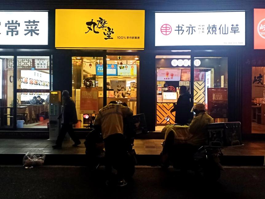 奇偶派找了一个寻常工作日的下午1点,来到成都核心商业圈太古里,在新式茶饮和大众茶饮市场中选择了四家奶茶店蹲点,它们分别为喜茶、丸摩堂、书亦烧仙草、蜜雪冰城(以下简称喜、丸、书、蜜)。