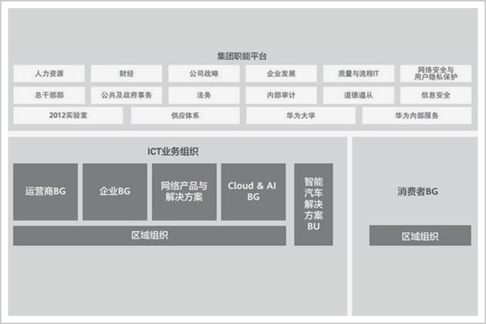 华为目前共有五大BG:运营商BG、企业BG、消费者BG和Cloud&AI BG。在华为,BG是指公司的业务集团,不属于公司职能部门。而BU(Business Unit)是指经营单元,BU的地位虽然弱于BG,但也代表了华为未来的战略方向。