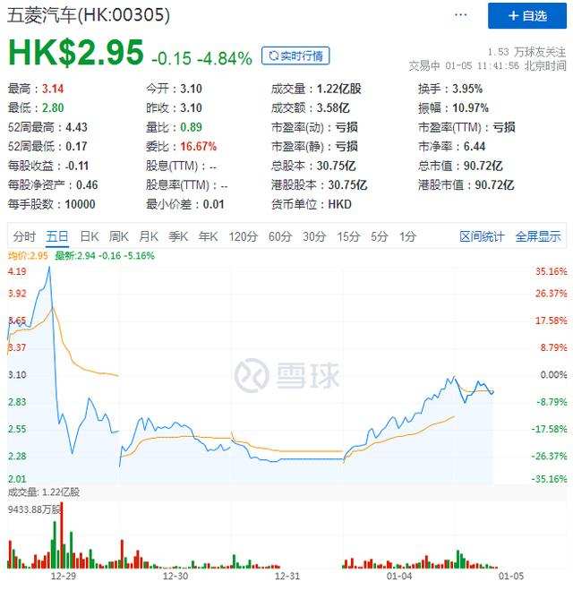 前不久,港股五菱汽车也出现了投资者情绪波动。12月29日午后,五菱汽车股价突然直线跳水,从最高涨43%到最低跌29%,盘中振幅高达72%,市值蒸发近50亿港元。那么,这种资本市场的情绪波动,后续也很有可能因为一些别的因素而重演。
