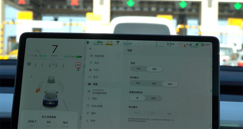 我们的驾驶员同样体验过其他车型的辅助驾驶,虽然类似的功能已经快成电动汽车的标配了,但他表示Model 3 的辅助驾驶比较“舒服”,能够放松双脚。辅助驾驶中驾驶员的双手还是不能离开方向盘,否则就是提醒警报,多次不理会警报的话,就会强制退出辅助驾驶,这一点设计很人性化。