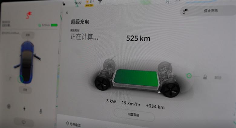 首先,我们在亚洲金融大厦的超级充电站将车子充满电,此时显示续航里程525km,增加334km大概用时1小时,速度还是蛮快的。在北京的特斯拉超充有点供不应求,目前在北京仅有50座特斯拉超充站,而北京曾是特斯拉保有量最大的城市,运气不好的话可能要绕路很远才能找到空闲的充电桩,不过目前特斯拉在中国的超充站建设速度很快。