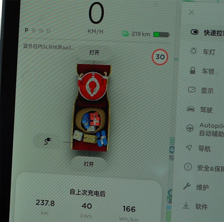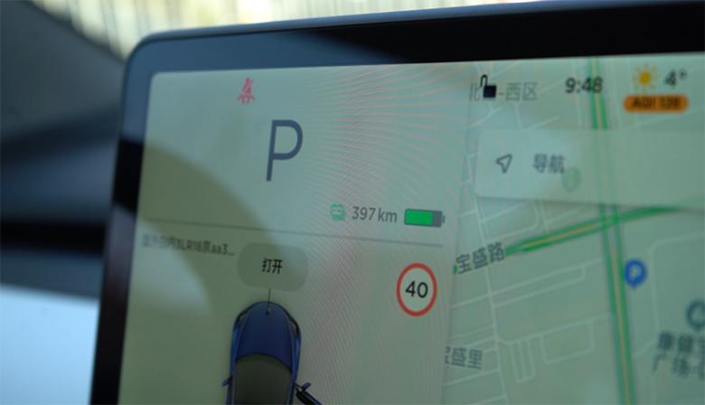 第二天我们在9:48分启动了Model3,续航显示还剩下397km,也就是一晚上掉了6km,这个数字没有想象中的高,还是可以接受的。