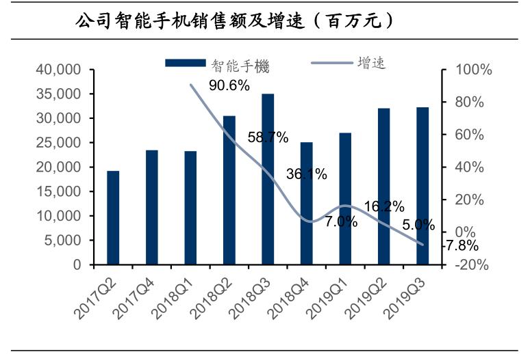 作为集团的基本盘,小米手机业务不仅占据着公司营收的最大头,还承载着流量入口的重任,对小米商业模式的重要性不言而喻。但通过上图可以看出,小米手机营收增速的高增长恰恰在公司上市之后出现拐点,2019年Q3则首次出现了同比下滑。