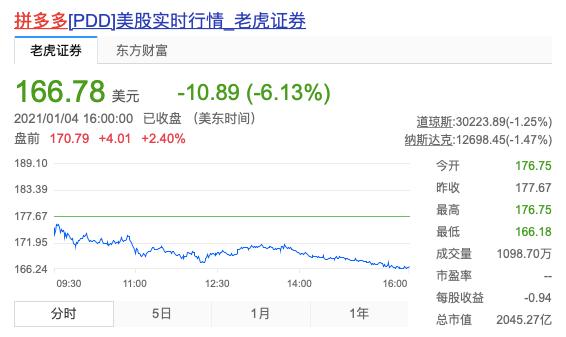 从23岁女员工深夜下班回家路上猝死,到知乎账号上“用命换钱”的发文,面对接连而来的两大公关危机,拼多多处理得不够有专业度和人情味,且都暴露出公司在人事管理、品牌宣传等层面存在不少问题。最直接的影响体现在股价上。截至稿前,拼多多股价大跌6.13%至166.78美元,市值为2045亿美元。