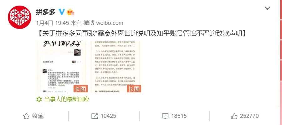 从23岁女员工深夜下班回家路上猝死,到知乎账号上“用命换钱”的发文,面对接连而来的两大公关危机,拼多多处理得不够有专业度和人情味,且都暴露出公司在人事管理、品牌宣传等层面存在不少问题。