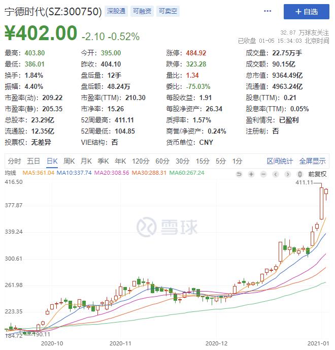 1月4日,A股迎来了2021年的第一个交易日。这一天,宁德时代股价在这第一个交易日掀起了惊人的涨幅,刷新历史新高。