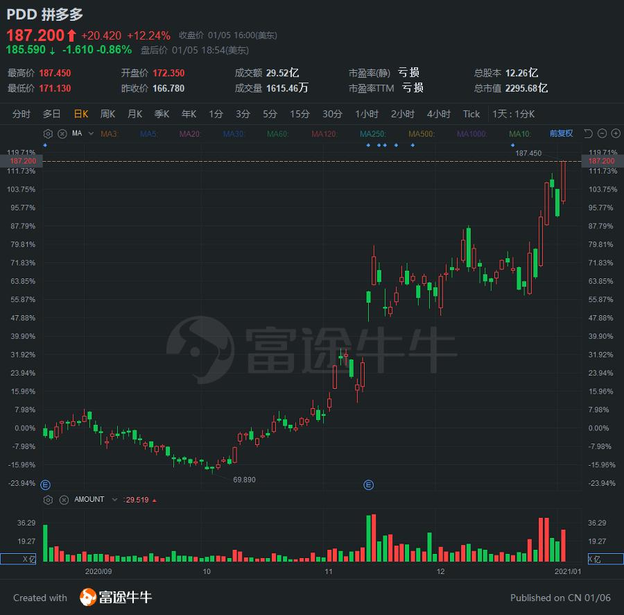 拼多多狂涨12%,市值逼近2300亿美元