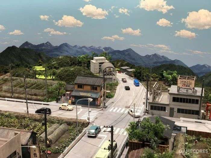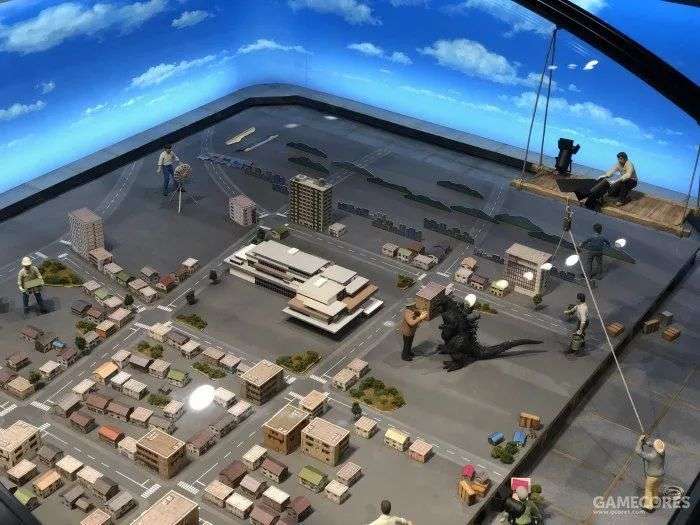 二楼是还原拍摄现场的街道、建筑模型,以及放映室。