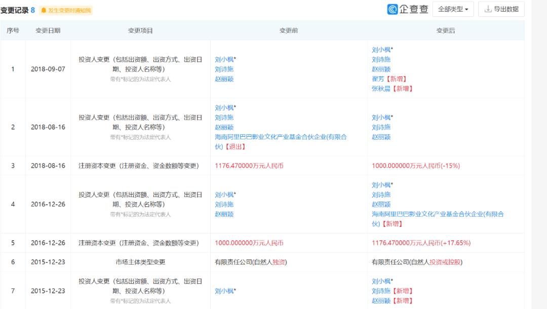2015年12月,刘小枫将江苏稻草熊20%的股权以200万元对价转让给刘诗诗,同时将1%的股权以10万元的价格转让给赵丽颖。刘小枫的持股比例相应减至79.00%,刘诗诗则成为稻草熊的第二大股东。