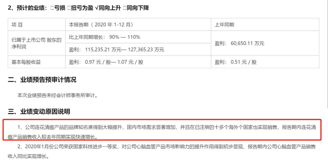 截图来源:以岭药业:2020年度业绩预告