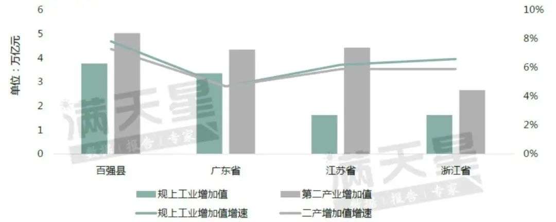 更重要的是,百强县规上工业增加值和第二产业增加值及增速远超广东、江苏等省份——它们已经形成了一定程度的路径依赖。