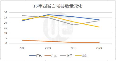 江苏在苏南、苏中、苏北都有一些比较好的县,尽管有些县改成区,分布仍然较为均衡,整体数量减少不多;但广东区域发展差距较大,发达的县域经济主要集中在珠三角,在强县改区后,县域经济发展就会显得有些难以为继。