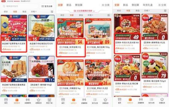 不论是良品铺子,还是和其是竞争关系的三只松鼠和百草味,消费者对它们的消费诉求大多都是“价少量多”。在这几个品牌的天猫旗舰店,销量最好的基本都是“零食大礼包”,价格也都维持在50-60元左右。