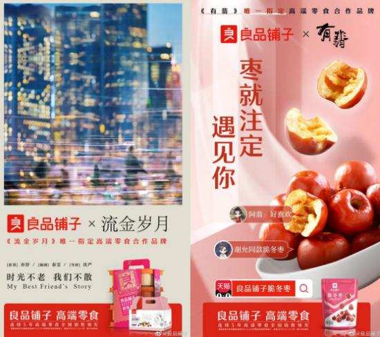 最后是提升品牌曝光度。不论是在前段时间的爆款网剧《沉默的真相》里,还是在最近热播的《有翡》《流金岁月》中,都能见到不少主角们捧着良品铺子零食的画面。