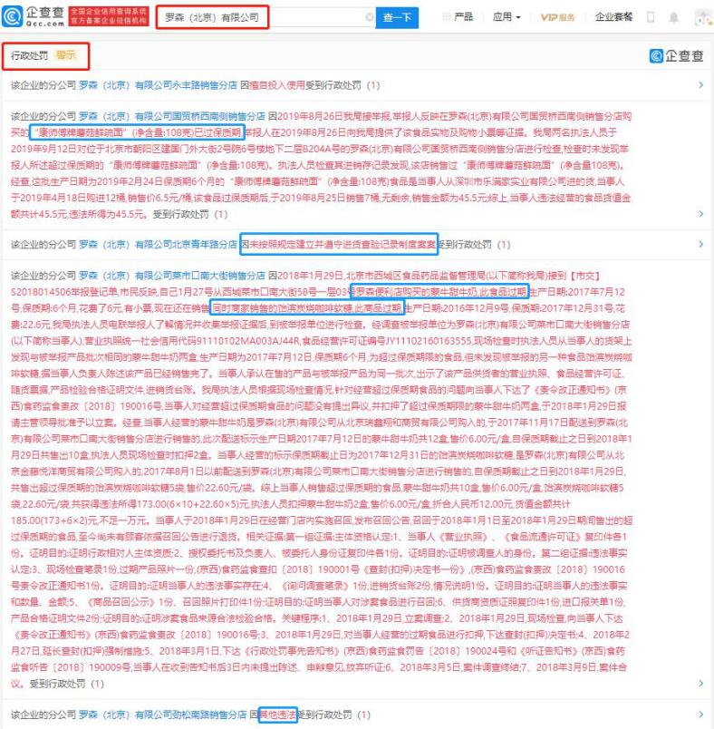 但除去本次的关东煮事件外,罗森中国便利店在食品安全问题上,实际上并没像宣传的那么万无一失。企查查显示: