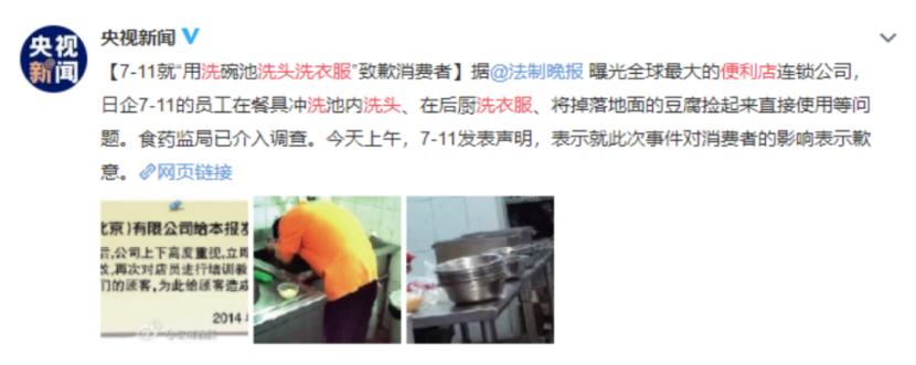 不止罗森,7-11中国的便利店也曝出过工作人员在餐具冲洗池洗衣服、掉落豆腐直接拿起来用的新闻,甚至网上还出现过一个“深圳一家7-11出现活老鼠”的视频。