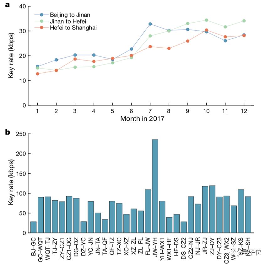 以及 2017年12月内,31条链路的密钥速率均高于28.4kbps,最大密钥速率达到235.4kbps。超过三分之二的链路产生的密钥速率大于50.0kbps。