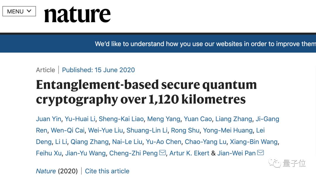 2020年6月,基于“墨子号”,潘建伟团队还首次实现了1120公里长距离无中继纠缠量子密钥分发。