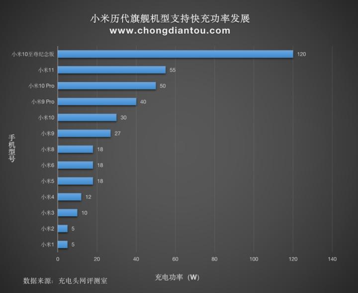 以小米为例,其快充充电器就经过了 12W 到 120W 的发展,在小米 8 时,标配的快充器还只能支持 18W 快充,到了小米 10 就已经突飞猛进发展到 50W。