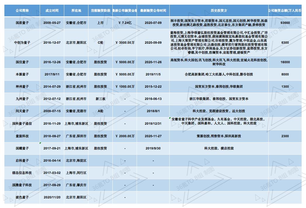 量子计算赛道公司情况 制图:36氪 数据来源:鲸准、天眼查、36氪、公开信息