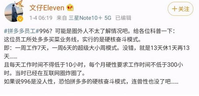 1月3日晚,一则“拼多多买菜98年员工凌晨1点半下班路上猝死”的消息引爆社交平台,在这一事件得到拼多多官方的侧面证实后,可以预见新一轮关于996的争议热潮已经席卷而来。