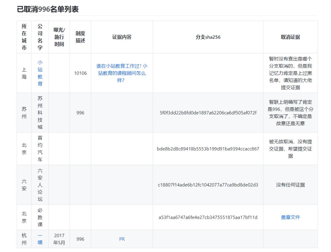 而在996.icu上线即发布并实时更新的“996名单列表”与“已取消996名单列”中,2年时间里“996名单列表”已经从最初的8家公司扩张总计达到218家公司,“已取消996名单列”则只有6家。