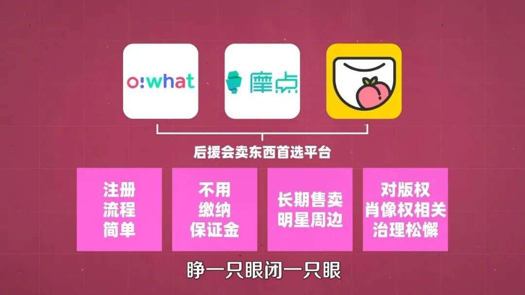 后援会对接的商品售卖平台也相当讲究,owhat、摩点、桃叭都是她们卖东西的首选。为什么不用淘宝、京东?原因很简单——上述这些平台注册流程简单,不用缴纳保证金,而且长期致力于明星周边售卖,对版权、肖像权等灰色地带睁一只眼闭一只眼。甚至,由于流程的漏洞,卖家还能和粉丝达成协议,未发货时就让粉丝点击确认收货,提前收款,生生把追星做成了一门「无本万利」的好生意。