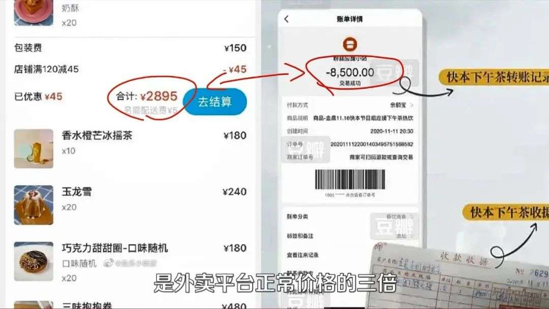 更加大头的花销,可以拿录制综艺节目时粉丝为摄影棚工作人员所做的下午茶应援举个例子。粉丝们不仅要支付动辄上万的场地费,而且必须购买指定店铺的下午茶套餐才能进入场地,更令人吊诡的是,该套餐的应援价格是外卖平台正常价格的近三倍。然而,有些明星的经纪公司却要求一定要做下午茶应援。