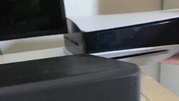 而另一个玩家放出的短视频显示,无论正放、横放、斜放,他都没法把PS5塞进电视柜。